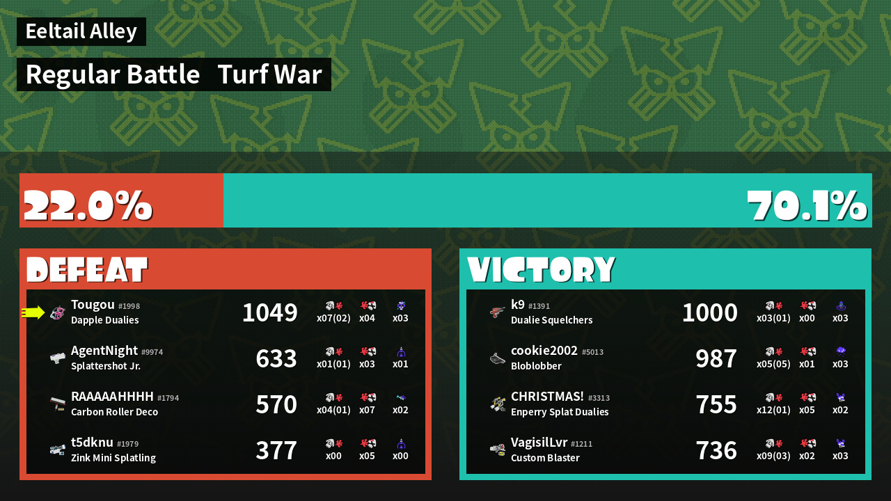 | Medals | #1 Overall Splatter #1 Turf Inker #1 Popular Target | ||