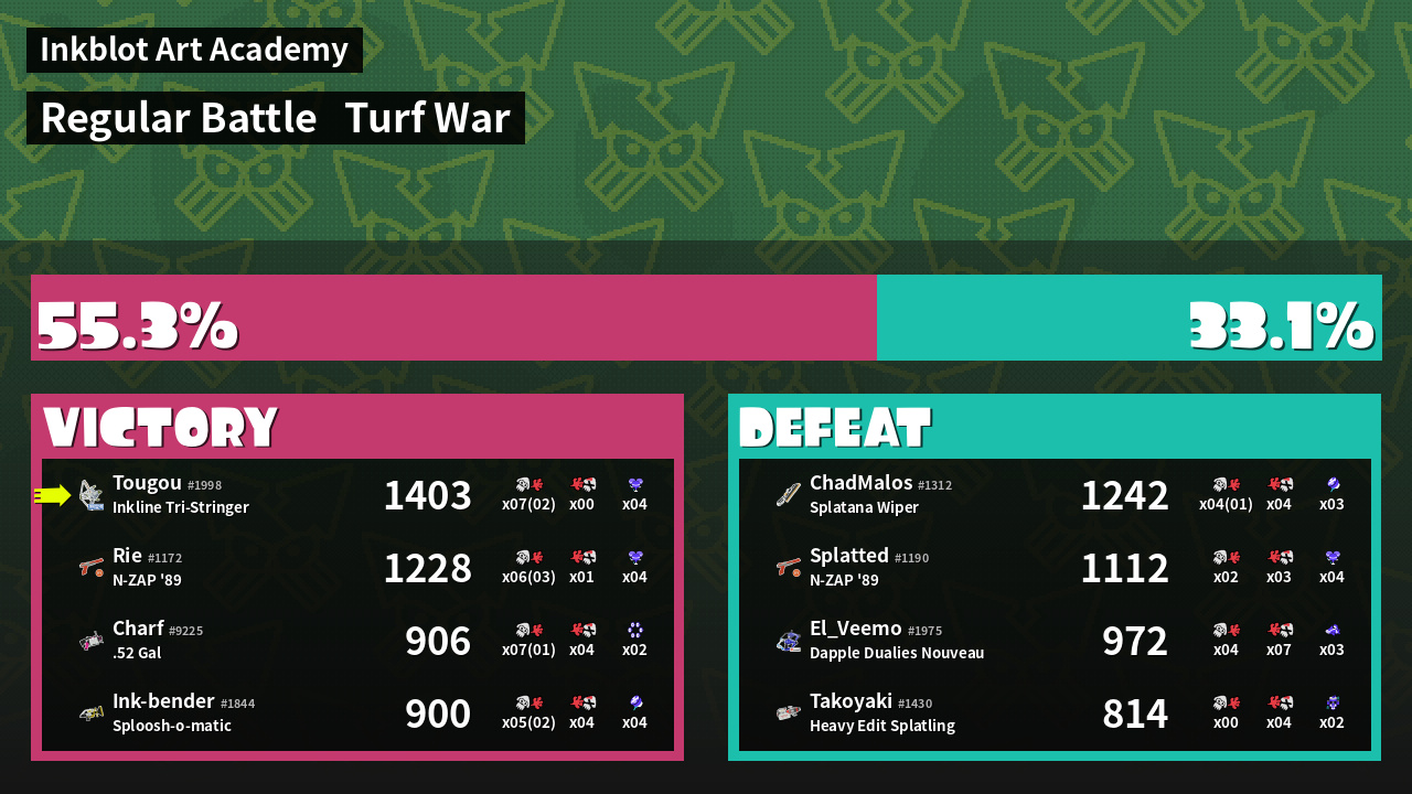 | Medals | #1 Overall Splatter #1 Turf Inker #1 Super Chump User | ||