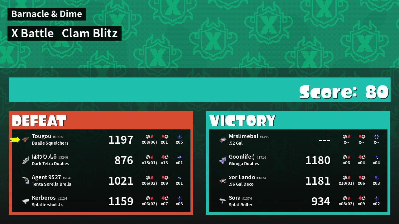 | Weapon | Dualie Squelchers ( Splat Bomb / Wave Breaker) | ||