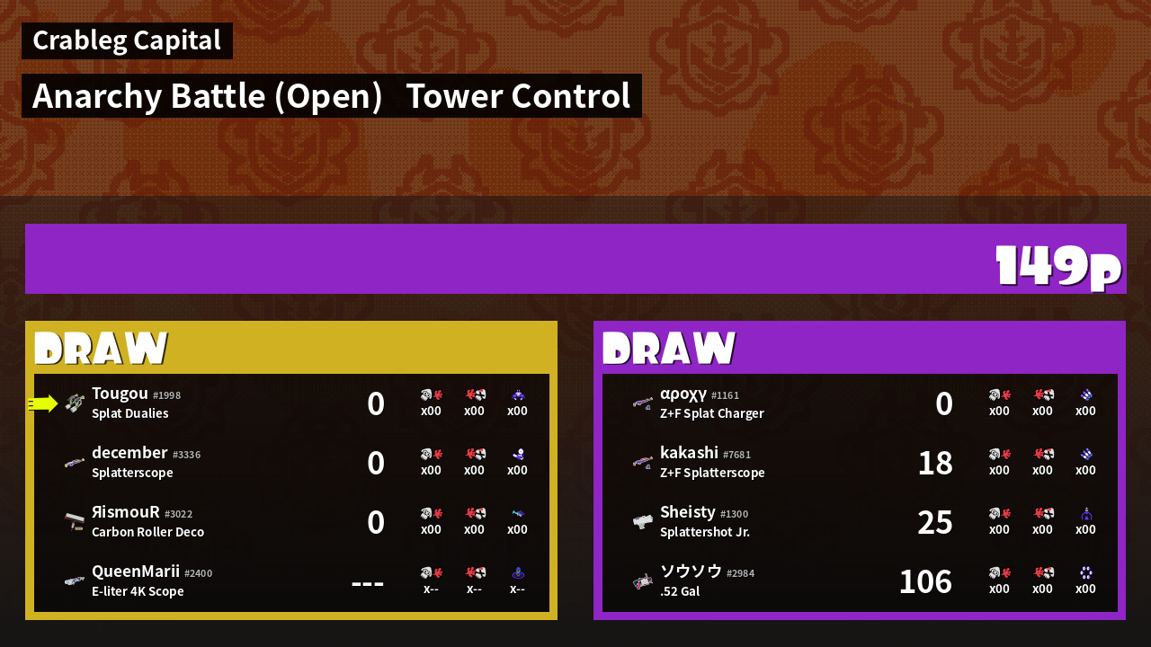 | Mode | Tower Control - Anarchy Battle (Open) | ||