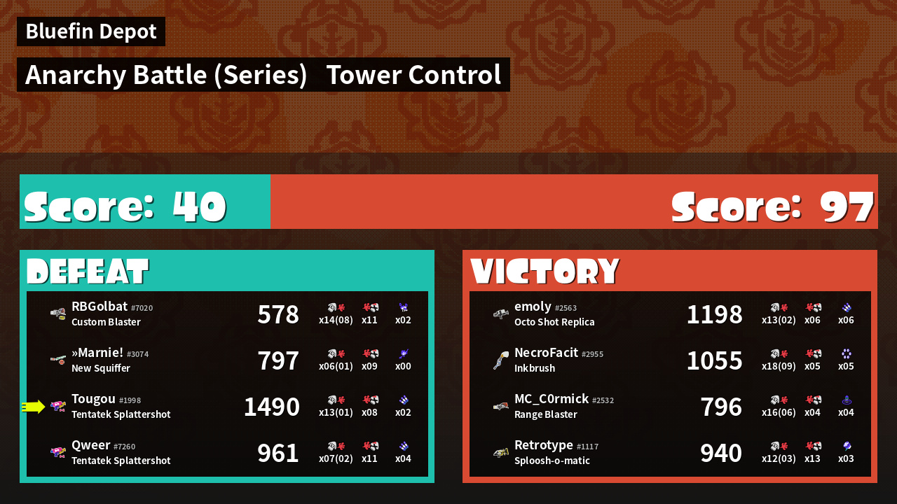 | Medals | #1 Turf Inker #1 Enemy Splatter #1 Checkpoint Breaker | ||