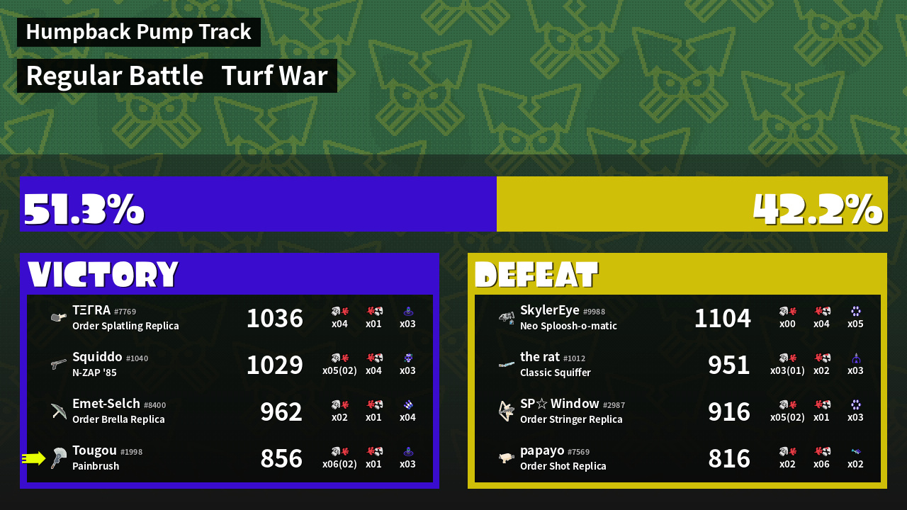 | Medals | #1 Overall Splatter #1 Home-Base Inker #1 Super Jump Spot | ||