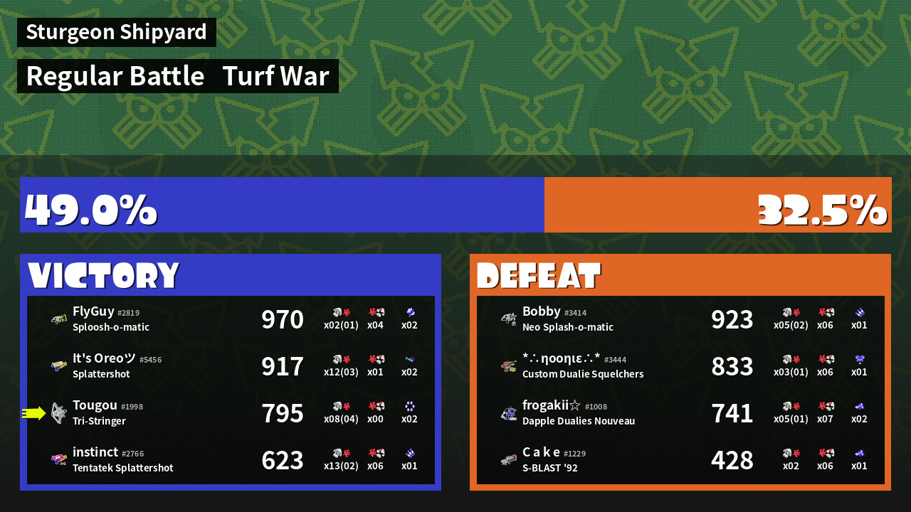 | Mode | Turf War - Regular Battle | ||