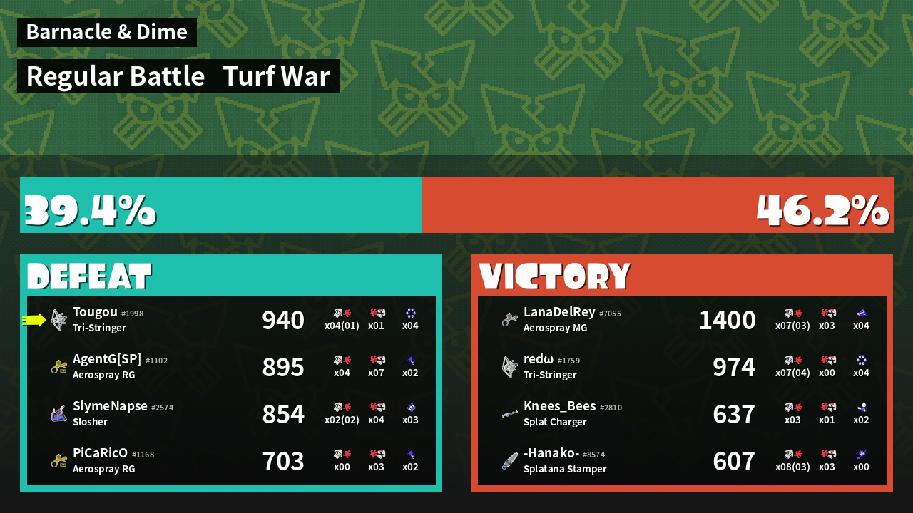 | Mode | Turf War - Regular Battle | ||