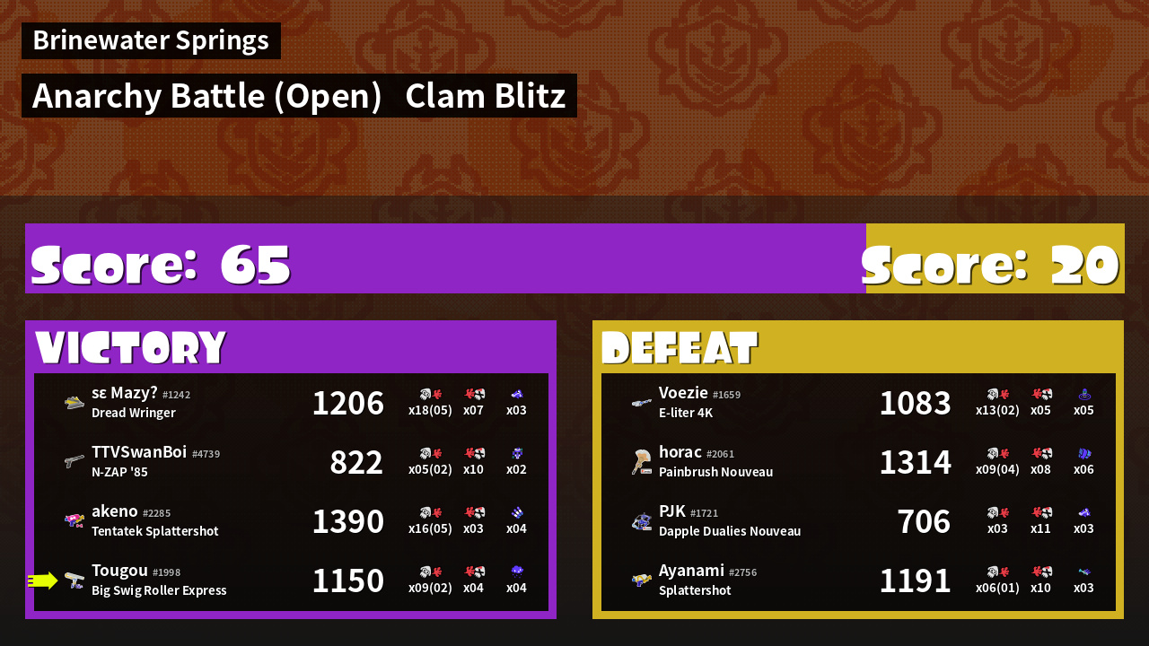 | Mode | Clam Blitz - Anarchy Battle (Open) | ||
