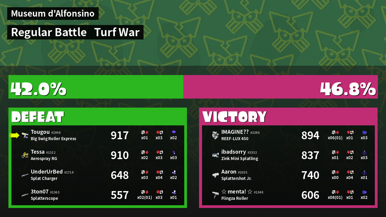 | Medals | #1 Turf Inker #1 Ground Traveler #1 Ink Storm User | ||