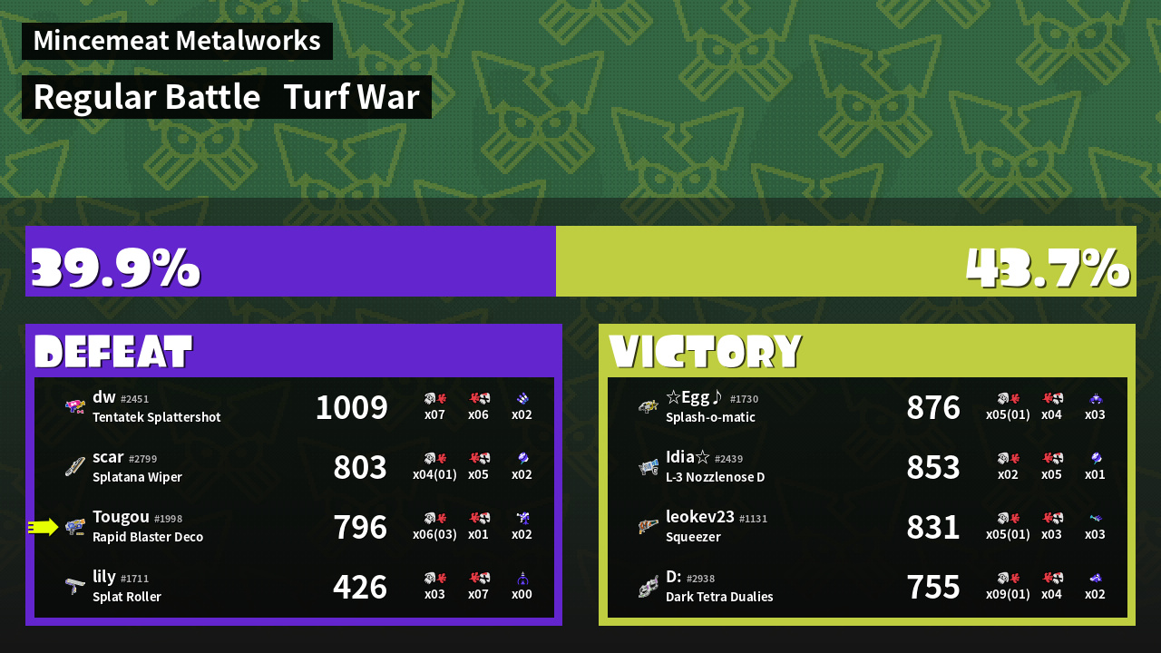 | Medals | #1 Splat Assister #1 Base Defender #1 Damage Taker |