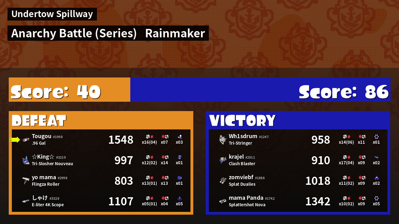 | Medals | #1 Overall Splatter #1 Turf Inker #1 Enemy Splatter | ||