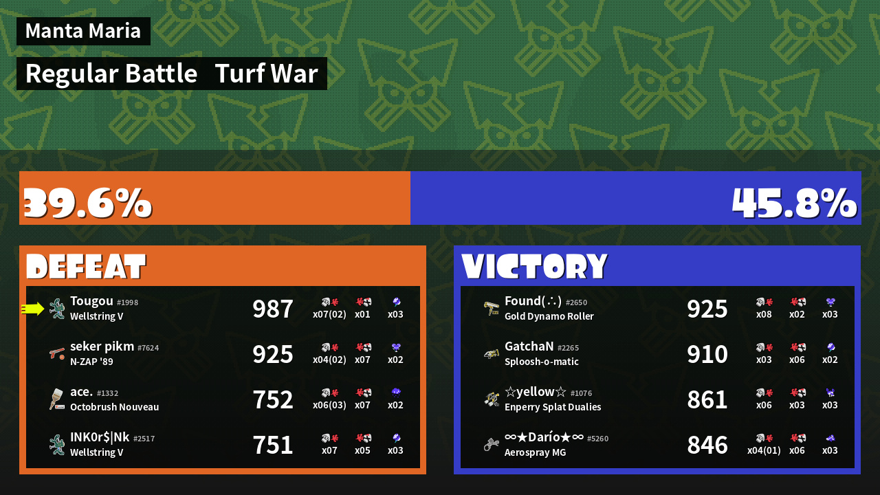 | Mode | Turf War - Regular Battle | ||