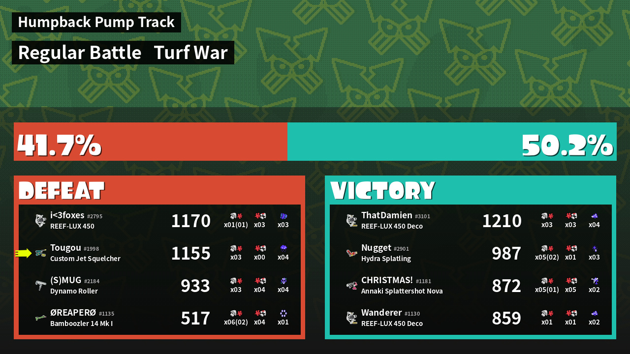 | Mode | Turf War - Regular Battle | ||
