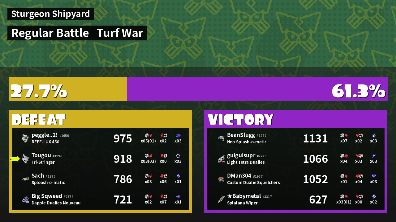 | Medals | #1 Splat Assister #1 Base Defender #1 Killer Wail 5.1 User | ||