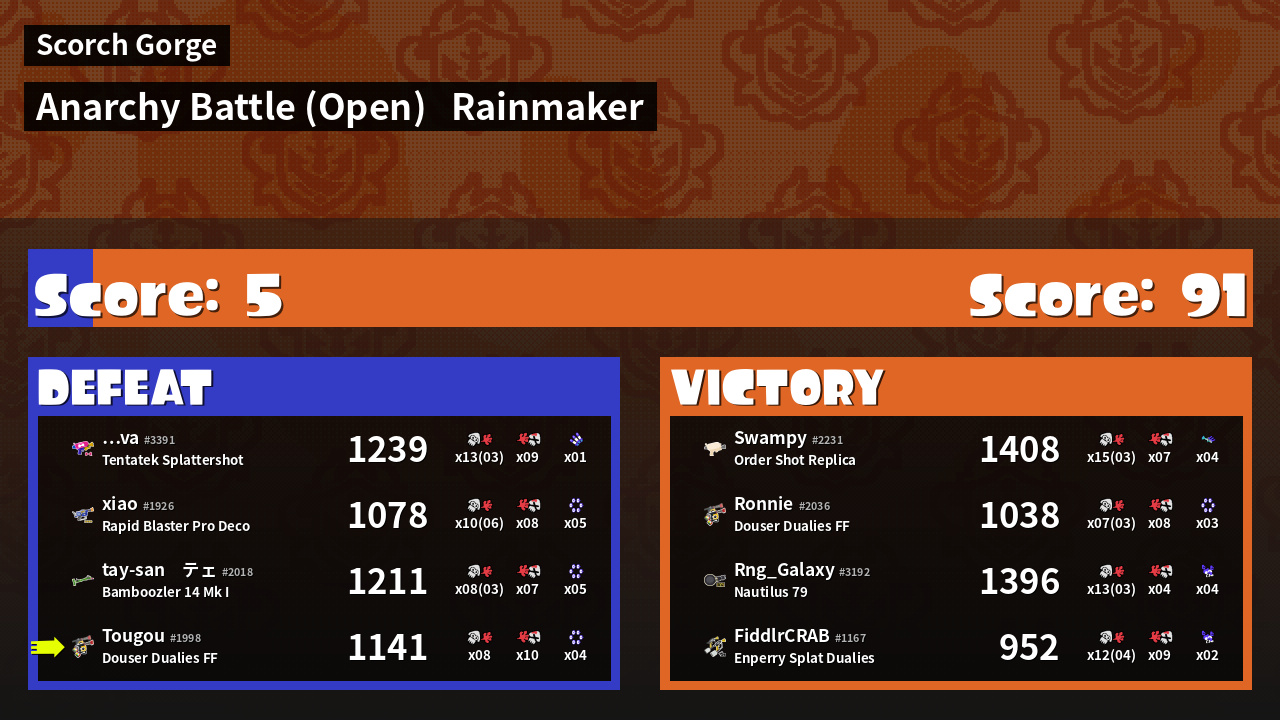 | Mode | Rainmaker - Anarchy Battle (Open) | ||
