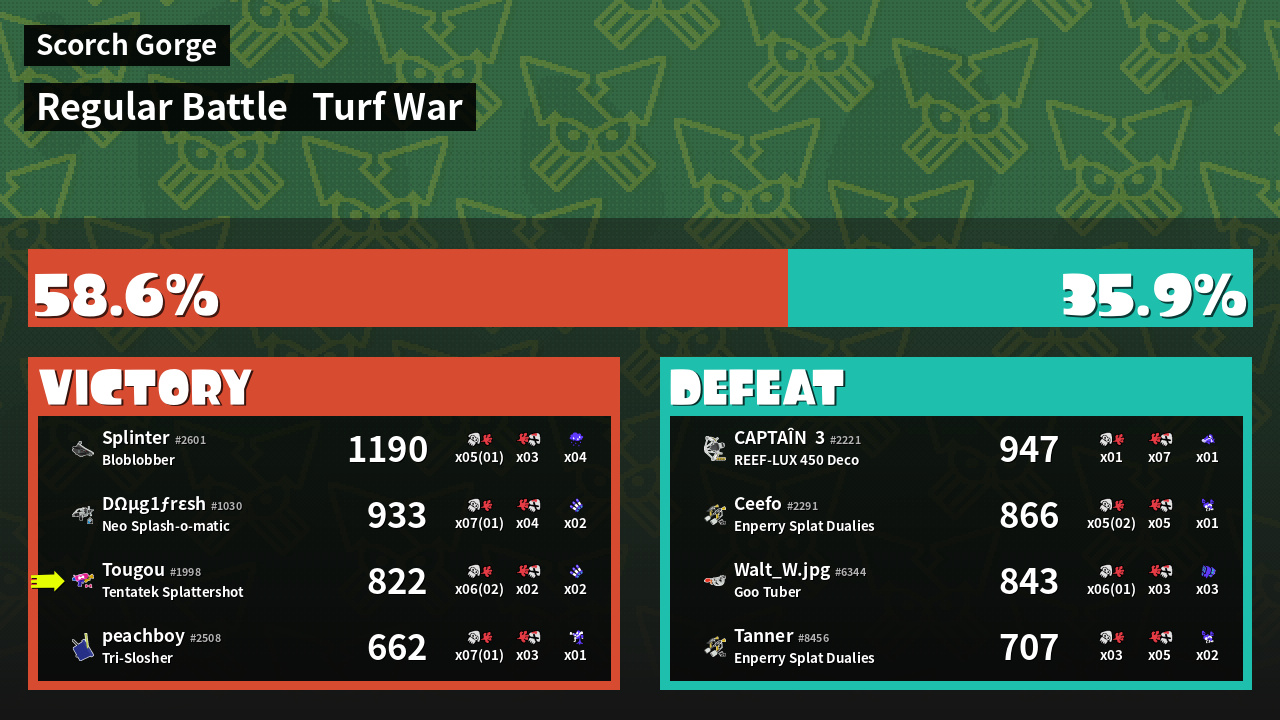 | Medals | #1 Super Jump Spot #1 Splat Assister #2 Home-Base Inker | ||
