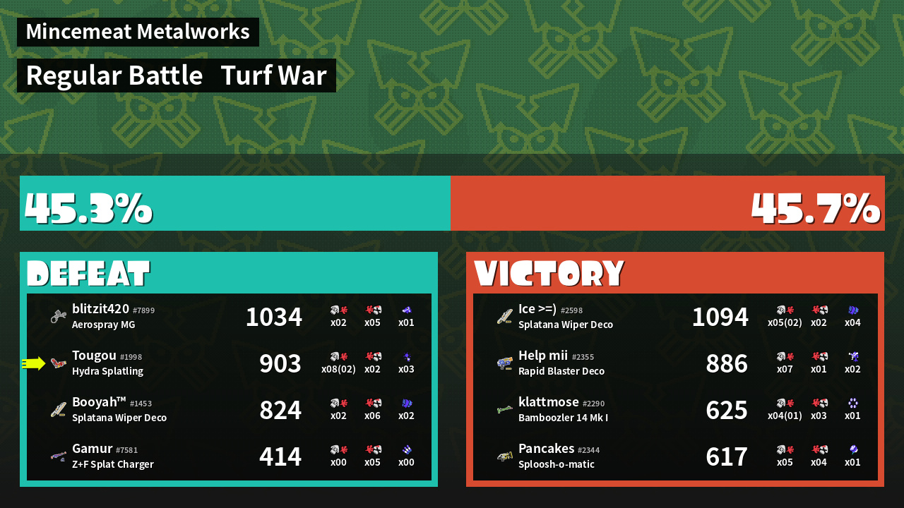 | Mode | Turf War - Regular Battle | ||