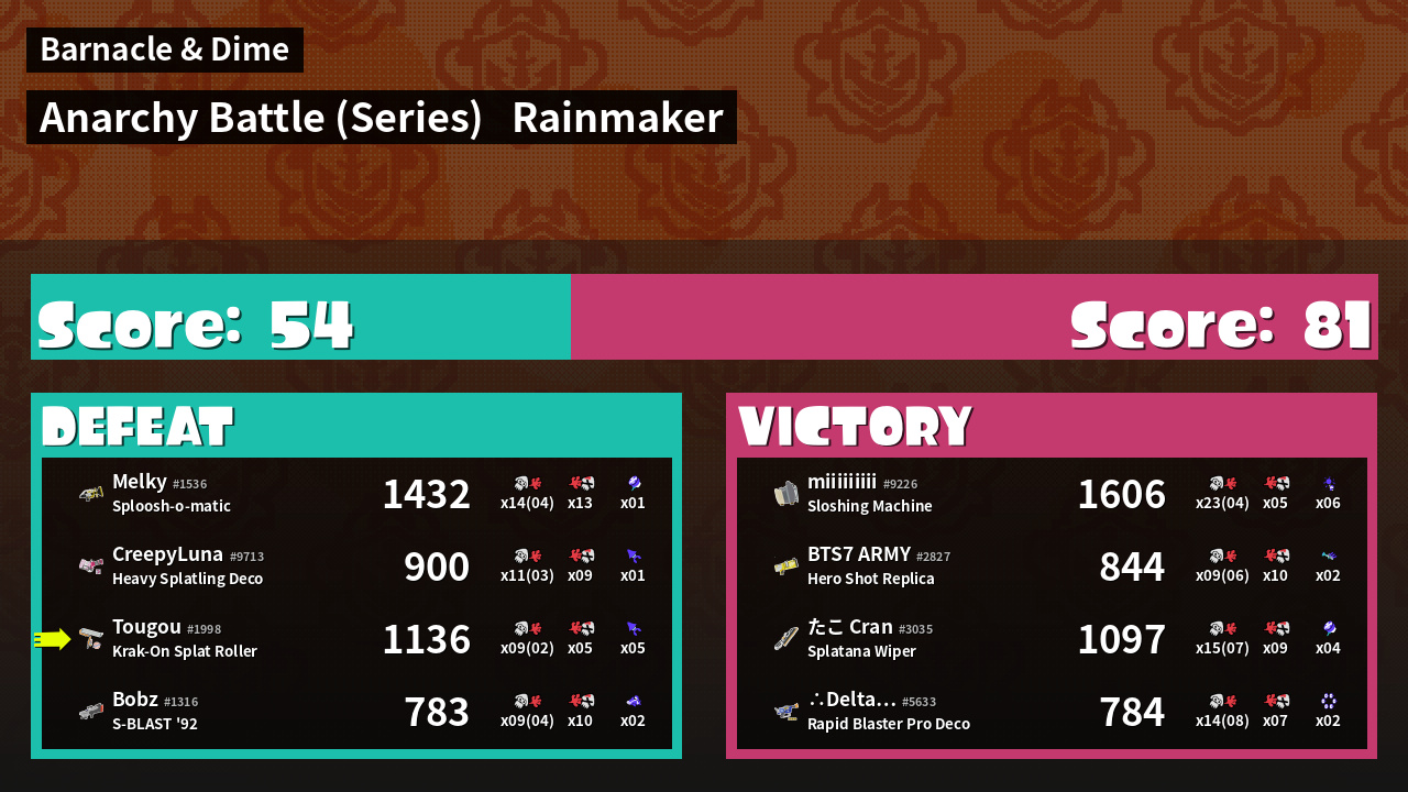 | Mode | Rainmaker - Anarchy Battle (Series) |