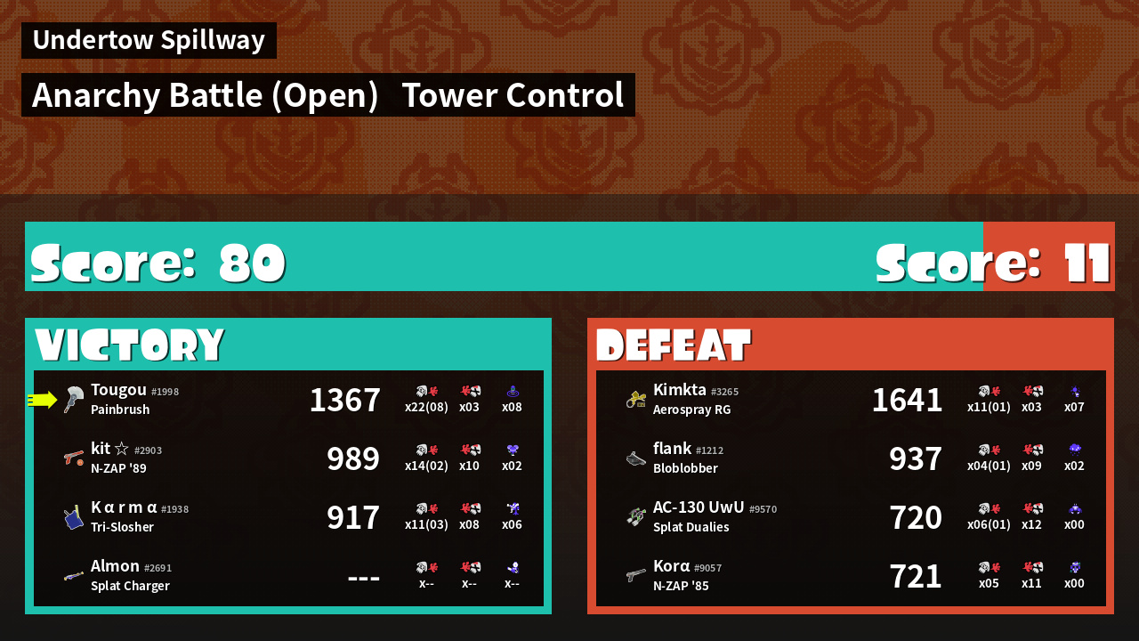 | Mode | Tower Control - Anarchy Battle (Open) | ||