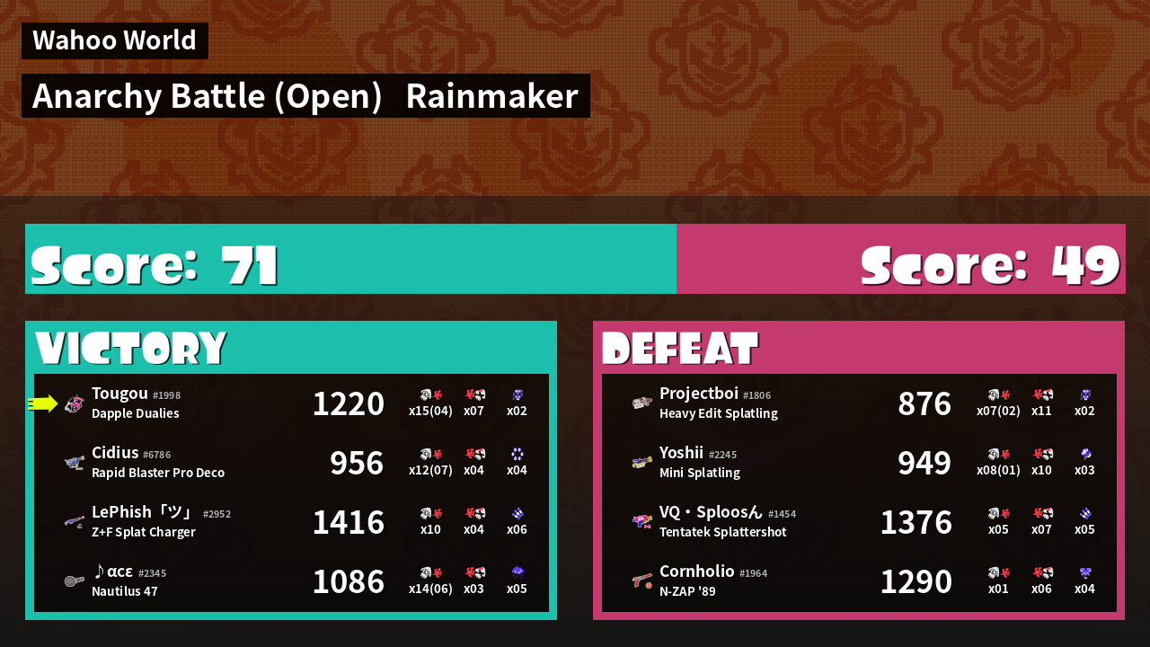 | Mode | Rainmaker - Anarchy Battle (Open) | ||