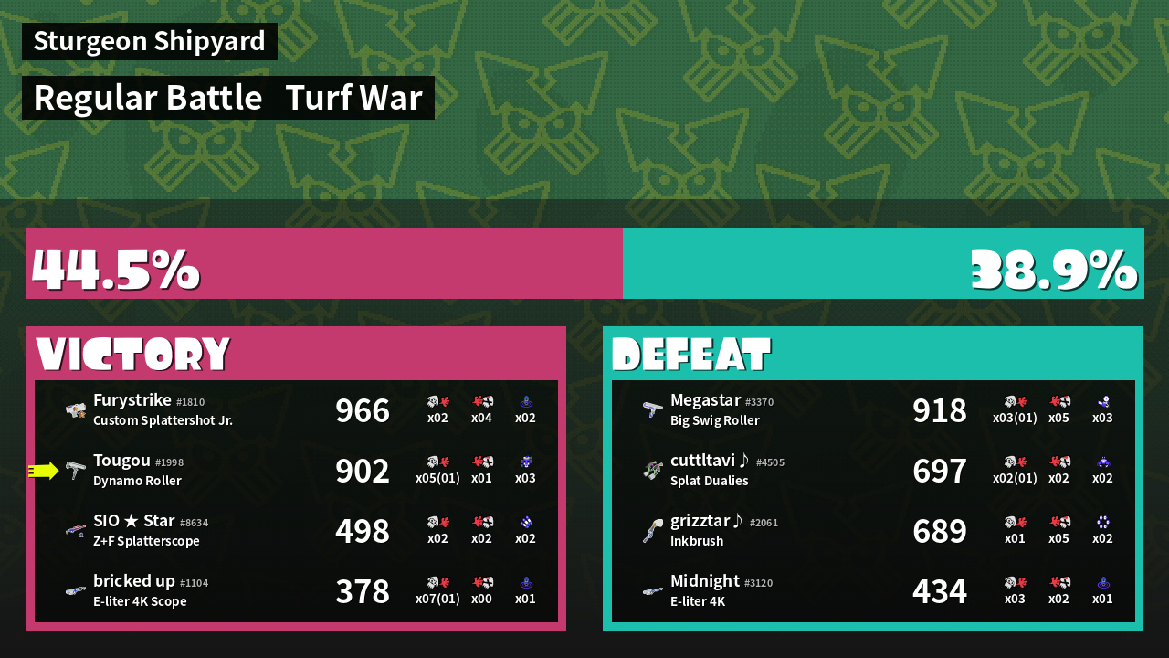 | Medals | #1 Popular Target #1 Splat Assister #1 Base Defender | ||