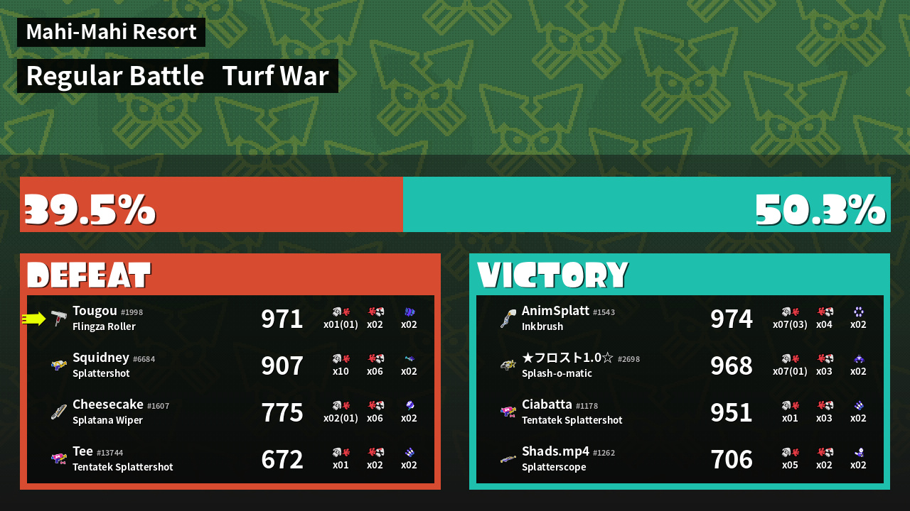 | Medals | #1 Turf Inker #1 Splat Assister #1 Tenta Missiles User | ||