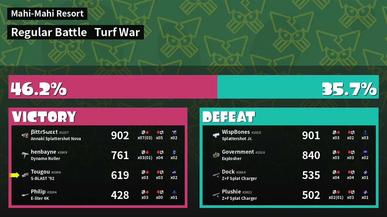 | Medals | #1 Ink Consumer #1 Reefslider User #2 Overall Splatter |
