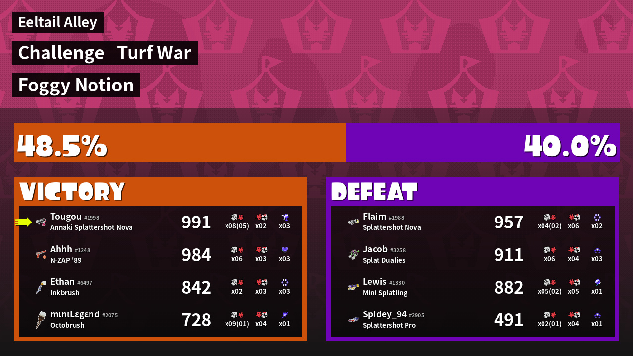 | Challenge | Foggy Notion The stakes are high in low-vis battles! | ||