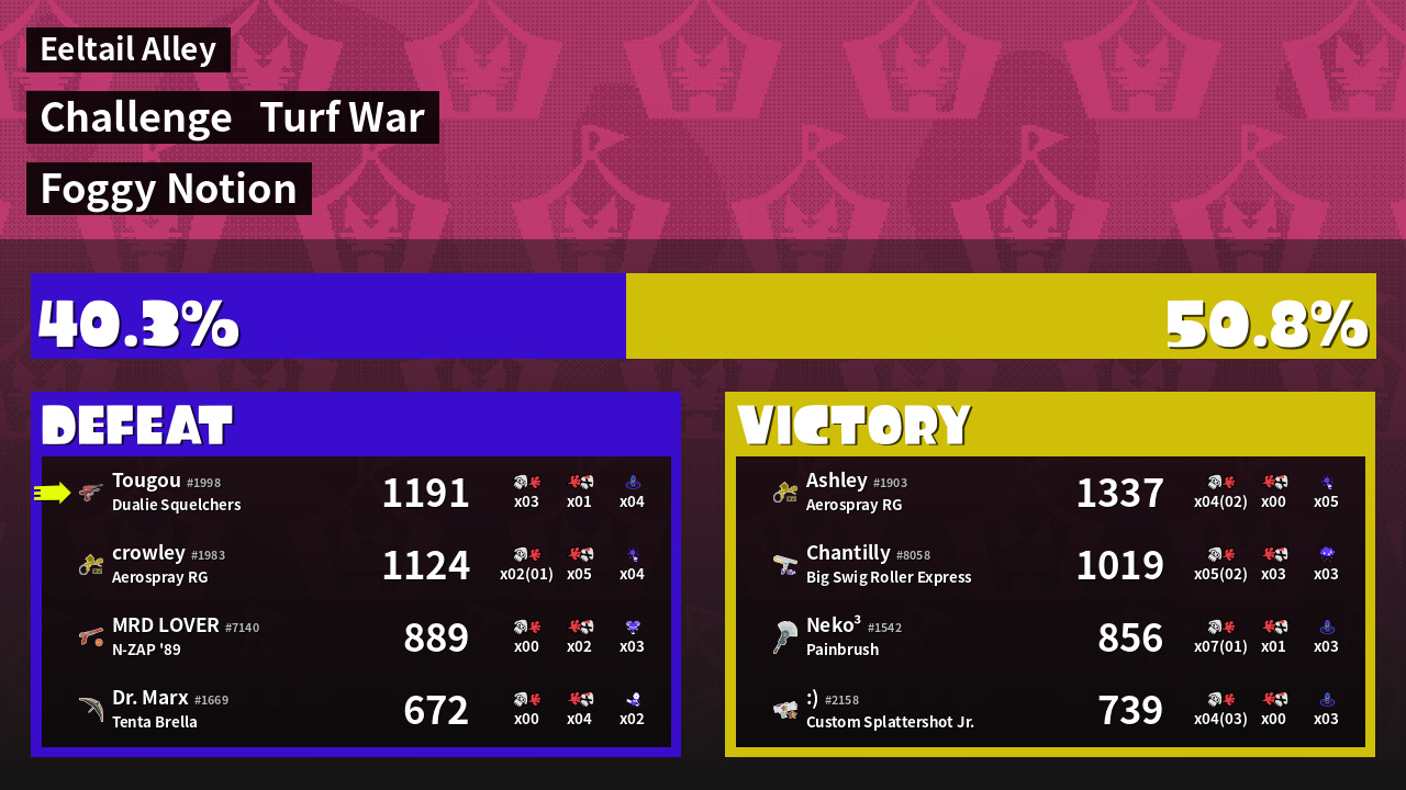 | Mode | Turf War - Challenge | ||