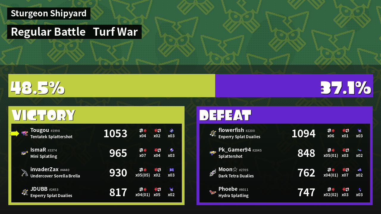 | Mode | Turf War - Regular Battle | ||