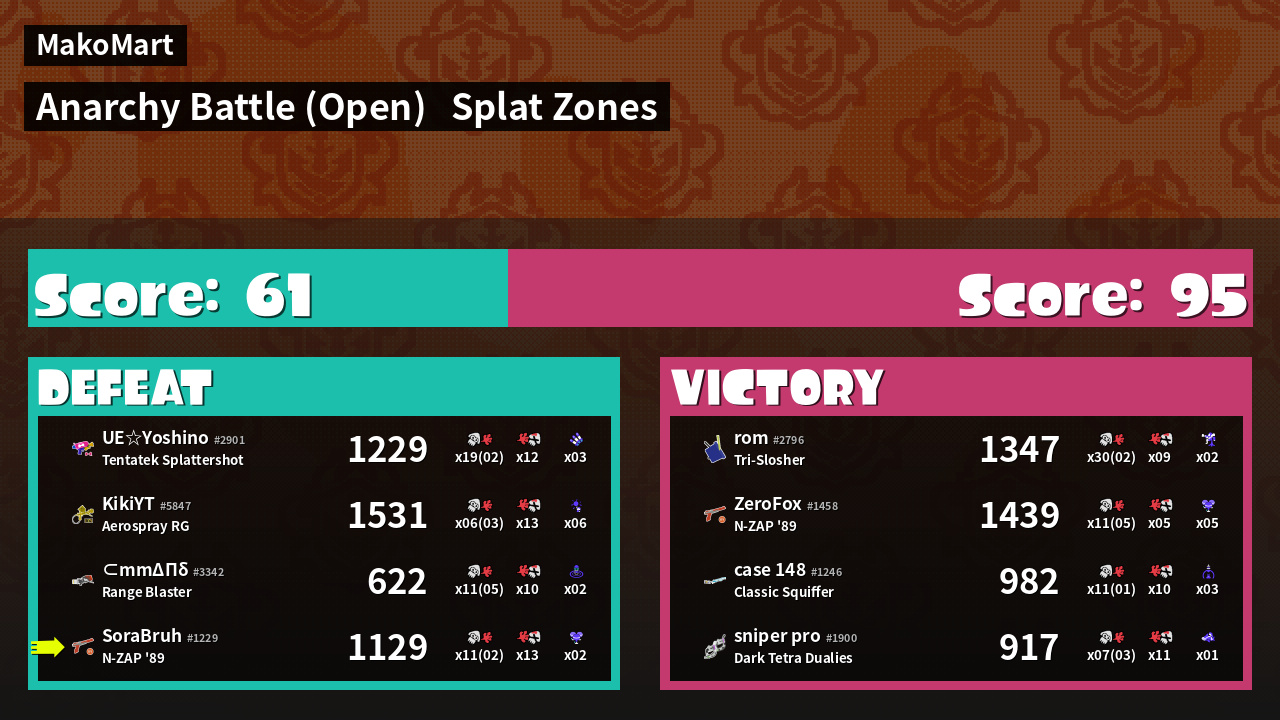 | Mode | Splat Zones - Anarchy Battle (Open) | ||