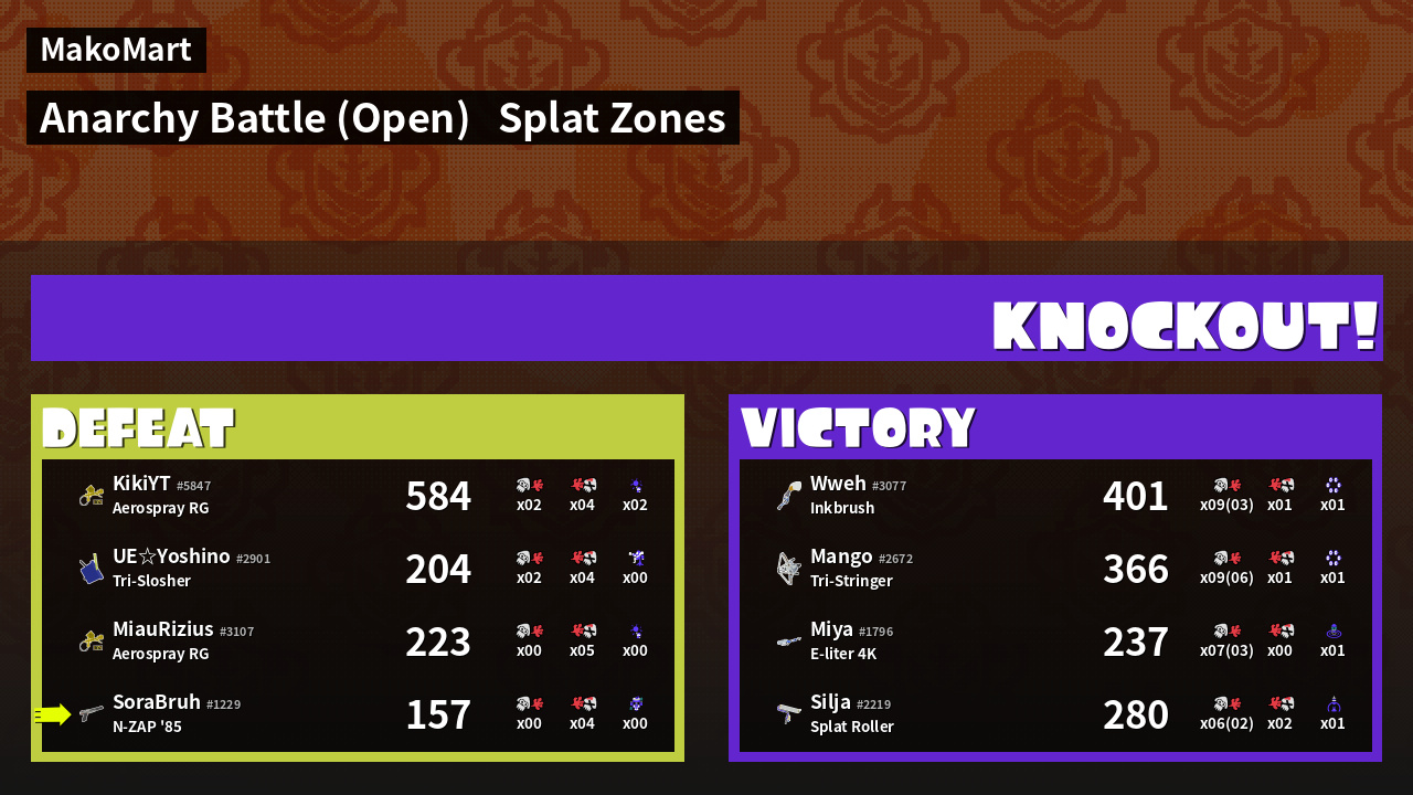 | Mode | Splat Zones - Anarchy Battle (Open) | ||