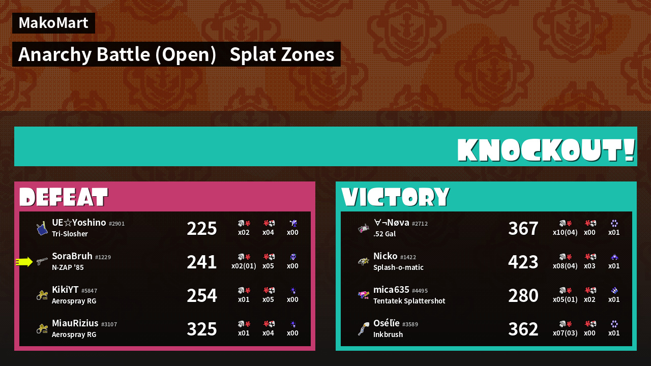 | Mode | Splat Zones - Anarchy Battle (Open) | ||