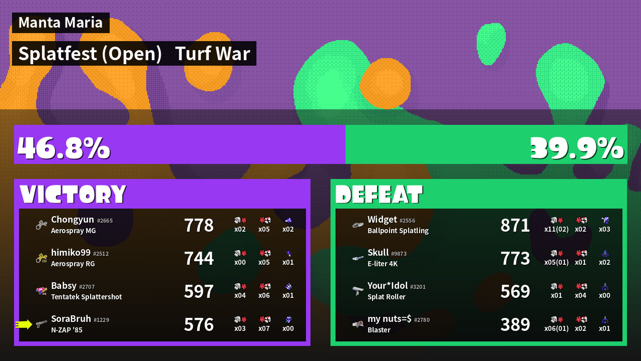 | Medals | #1 Enemy-Base Inker First Splat! #2 Overall Splatter | ||