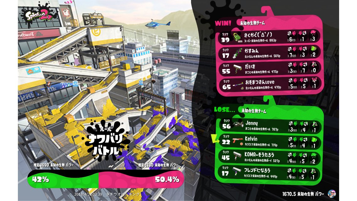 | Splatfest Title | 未知の生物 Champion 64 → 未知の生物 Champion 66 | |||||||||||||||||||||||||||||||||||||||||||