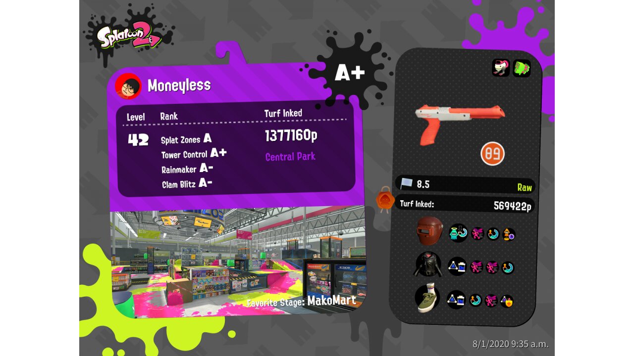 | Name | Weapon | Level | Rank | Inked | k+a/sp | k/d |