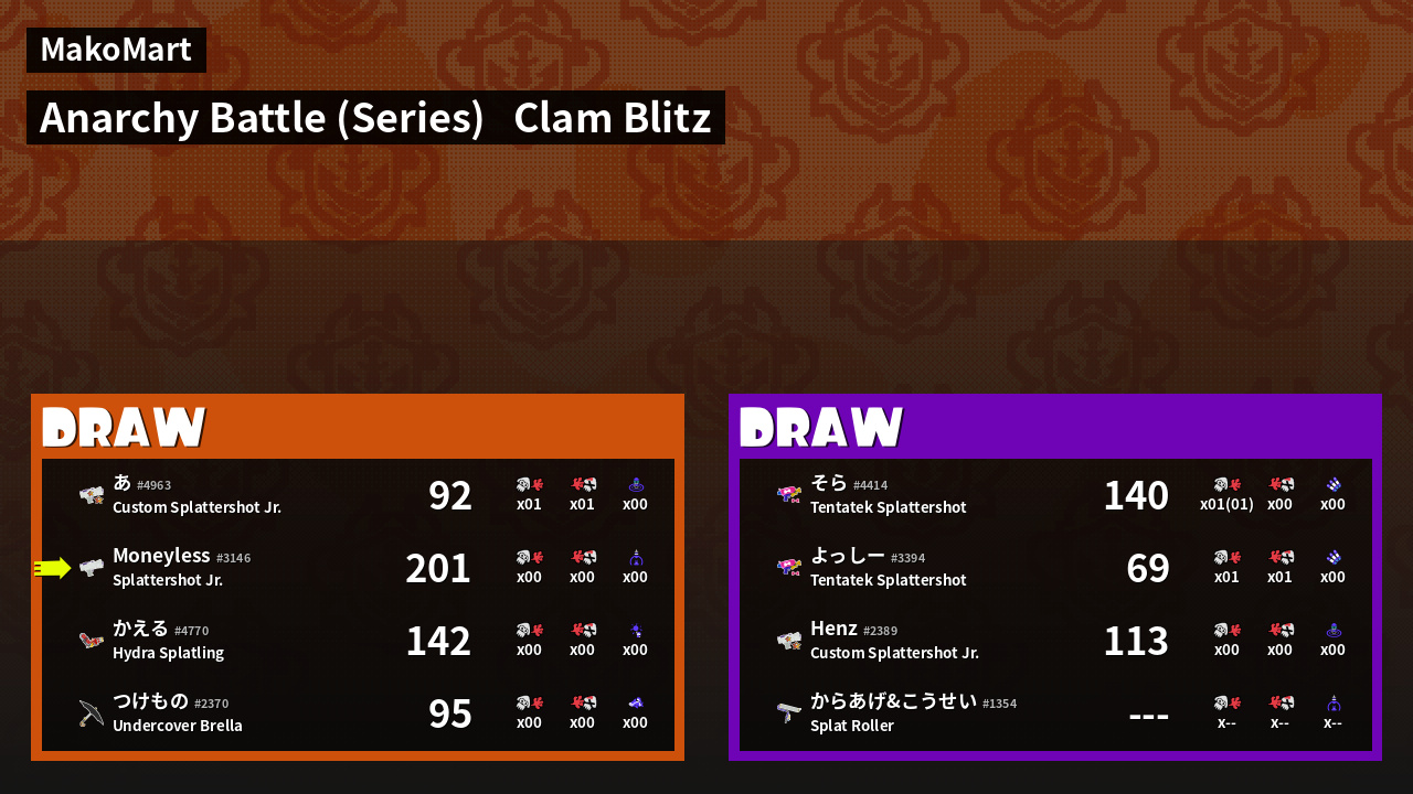 | Mode | Clam Blitz - Anarchy Battle (Series) | ||