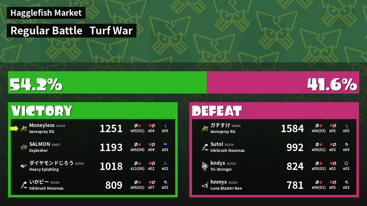 | Medals | #1 Turf Inker #1 Enemy-Base Inker #1 Damage Taker | ||