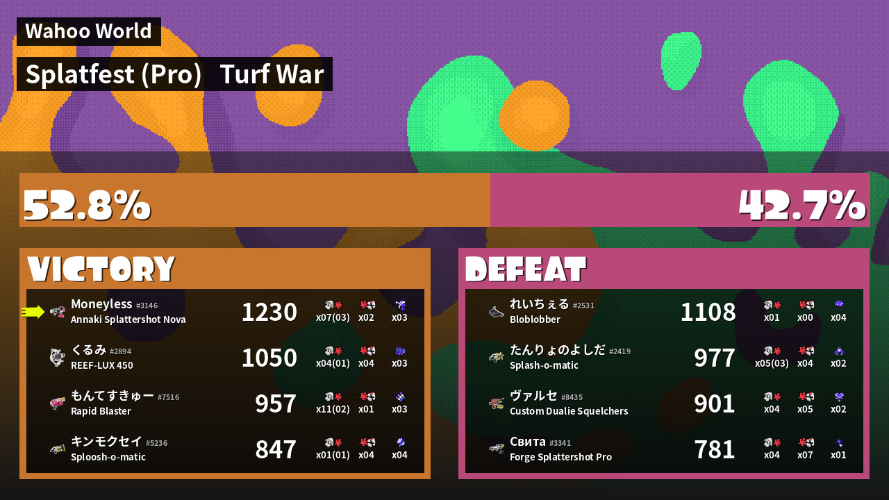 | Mode | Turf War - Splatfest (Pro) | ||