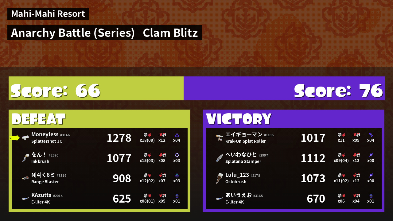 | Mode | Clam Blitz - Anarchy Battle (Series) | ||