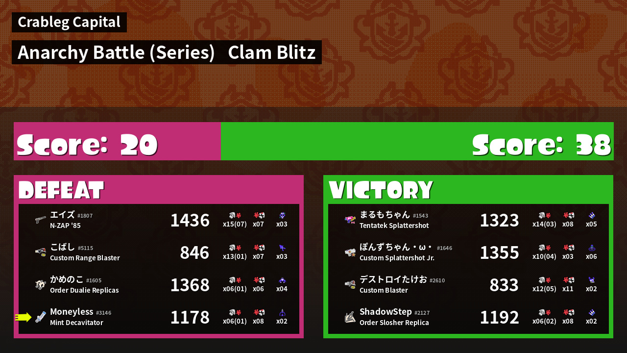 Results of Moneyless's Battle