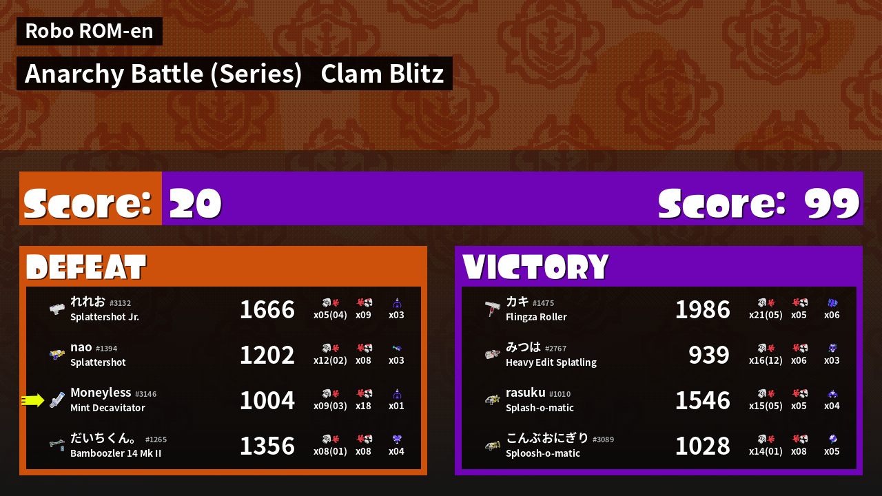 Results of Moneyless's Battle