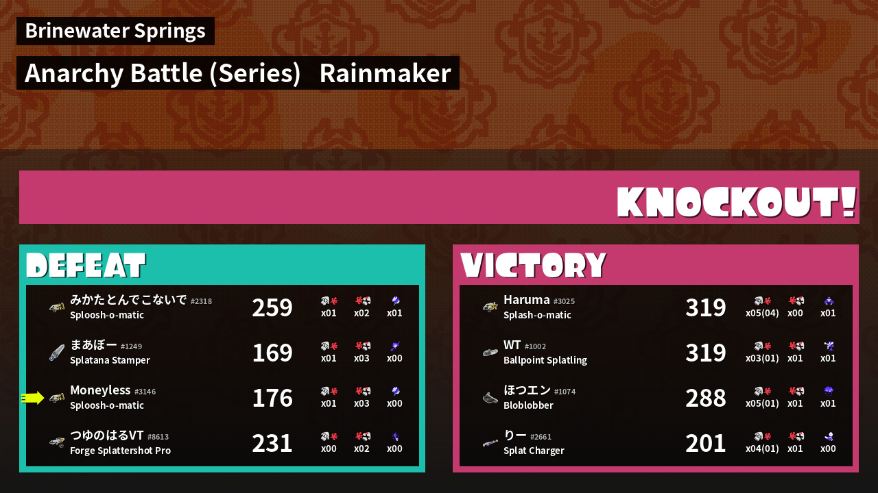 | Medals | #1 Overall Splatter #1 Enemy Splatter First Splat! | ||