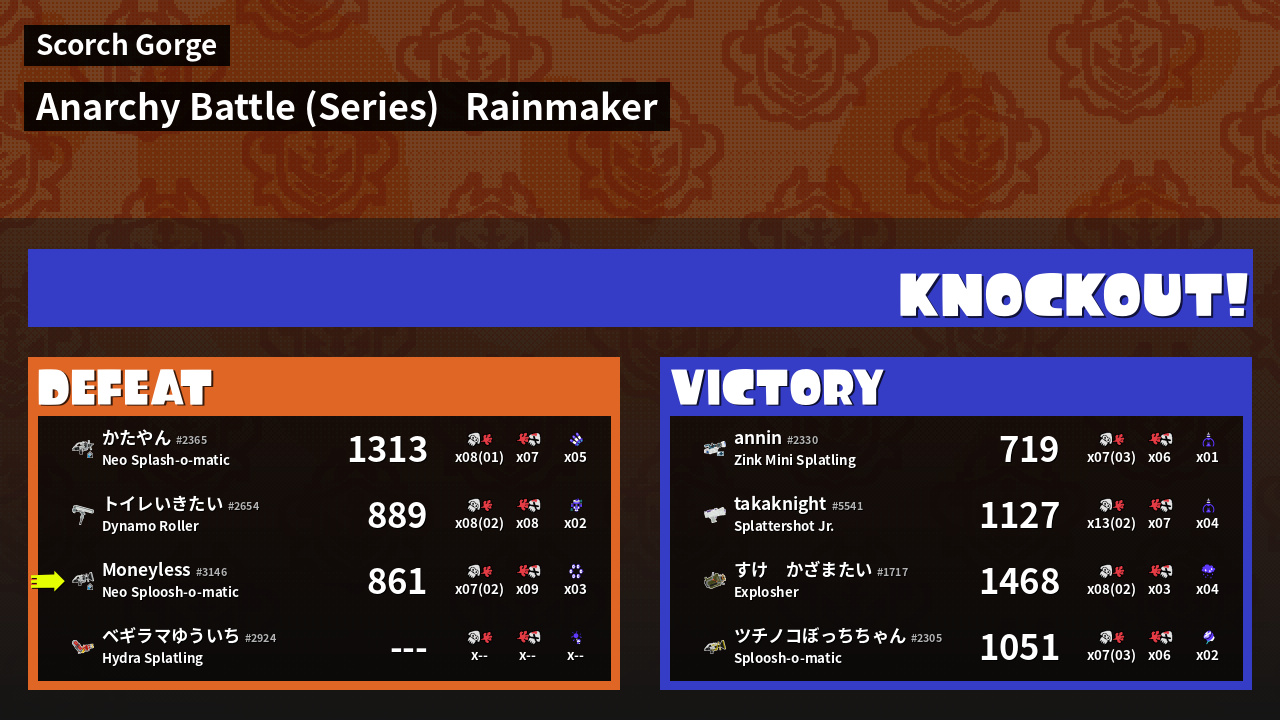 Results of Moneyless's Battle