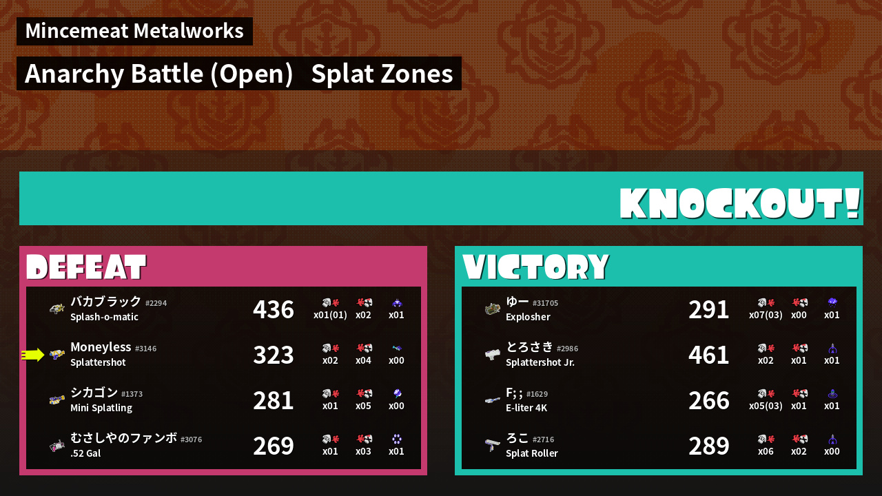 | Mode | Splat Zones - Anarchy Battle (Open) | ||