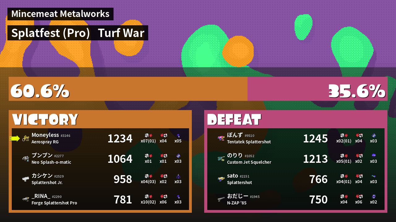 | Mode | Turf War - Splatfest (Pro) | ||