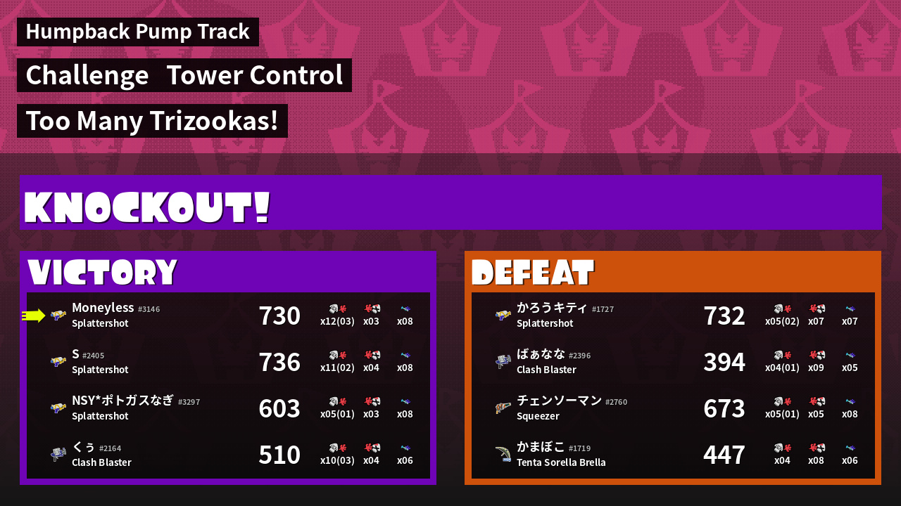 | Medals | #1 Overall Splatter Record-Score Setter #1 Super Jump Spot | ||
