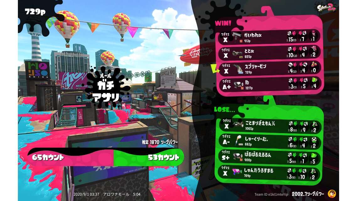 | Mode | Clam Blitz - League Battle (Twin) | ||||||||||||||||||||||||||||||||||