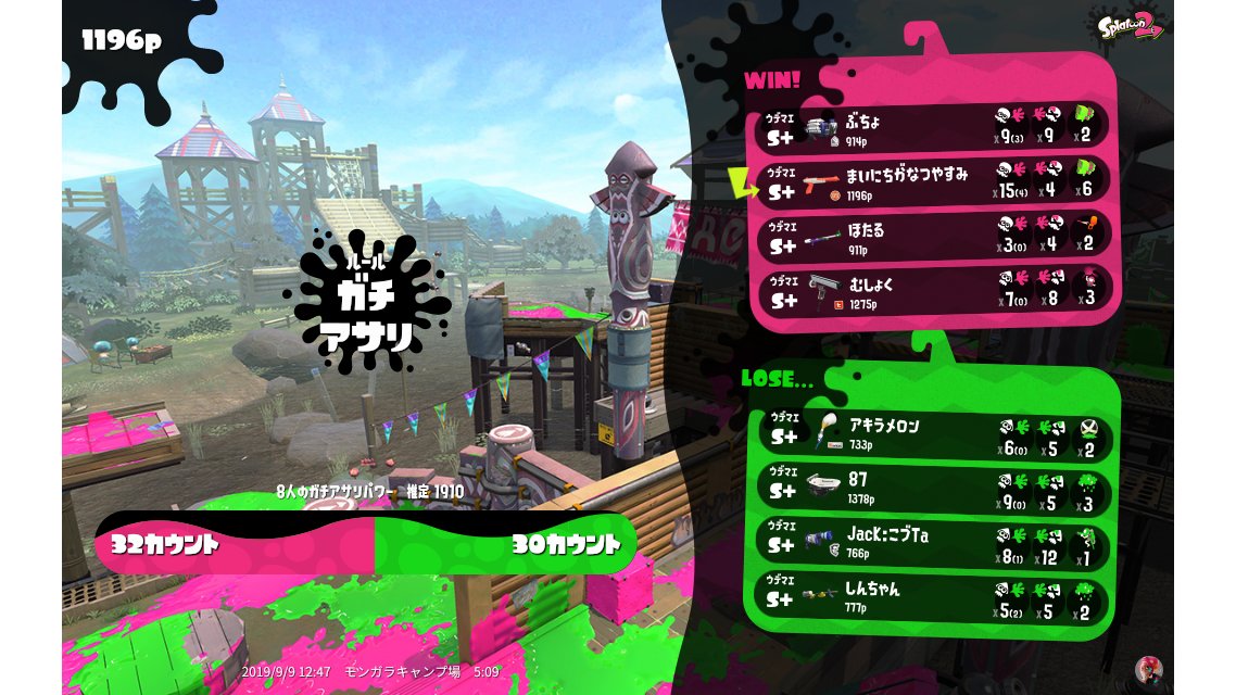 | Name | Weapon | Level | Rank | Inked | k+a/sp | k/d |