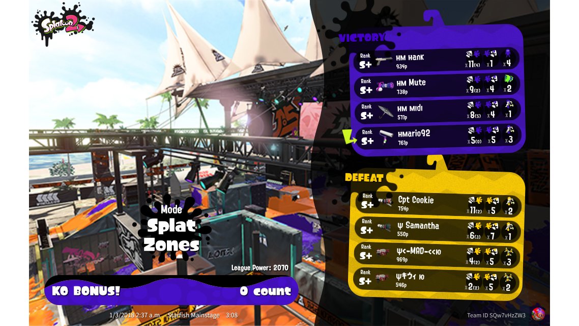 | Name | Weapon | Level | Rank | Inked | k+a/sp | k/d |