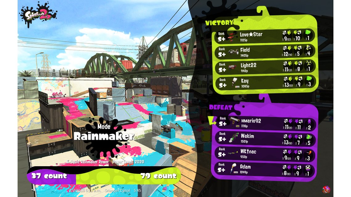 | Name | Weapon | Level | Rank | Inked | k+a/sp | k/d |