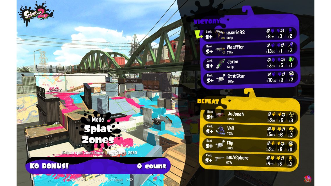 | Mode | Splat Zones - Ranked Battle |