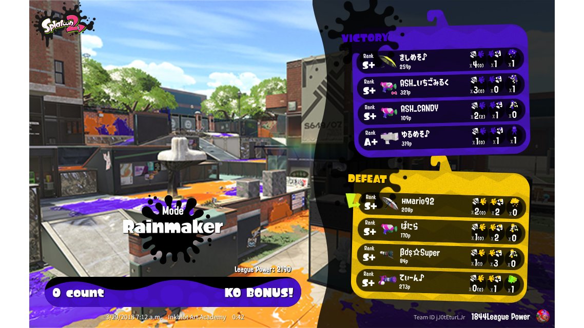| Name | Weapon | Level | Rank | Inked | k+a/sp | k/d |